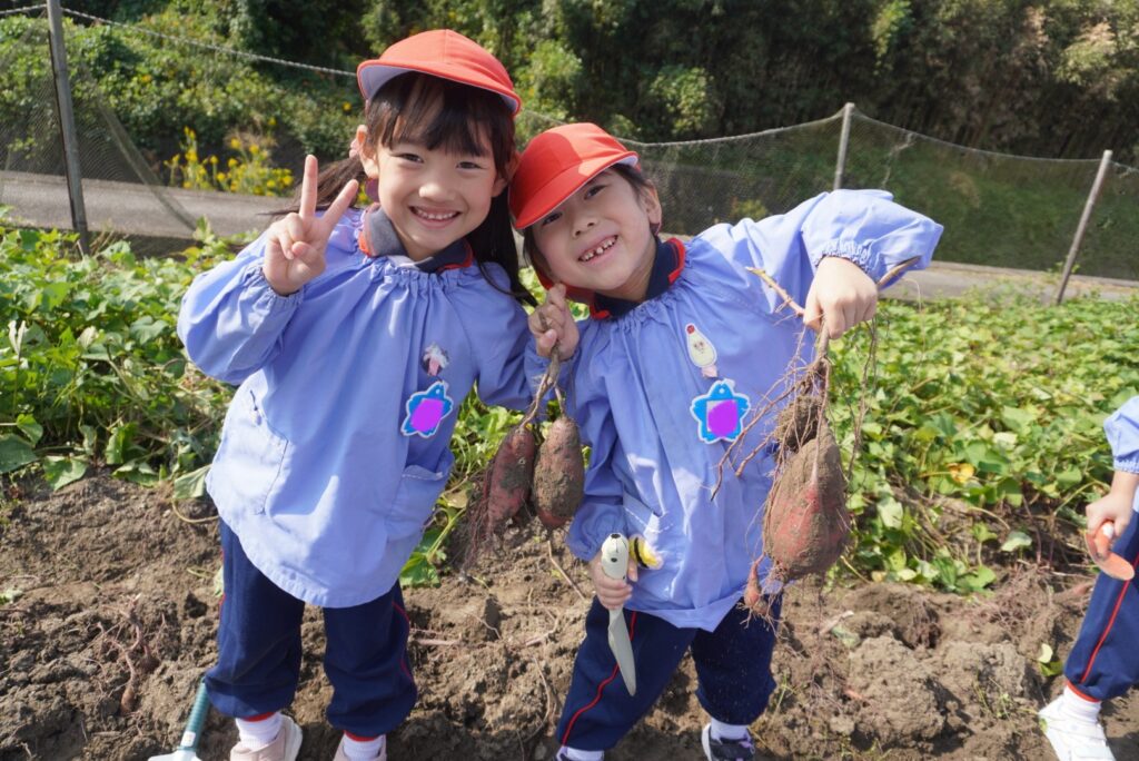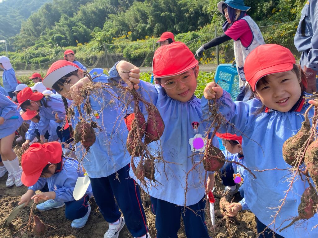 畑に着いて、シスターにお芋の掘り方を教えていただきました😌