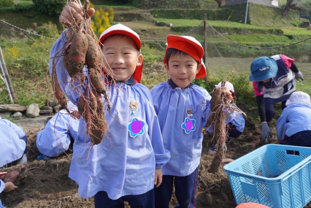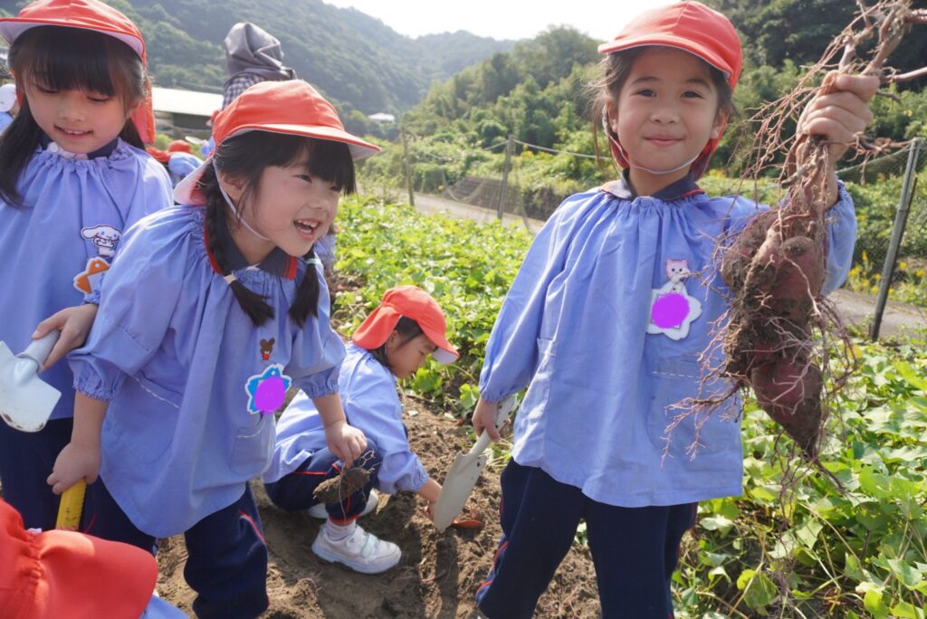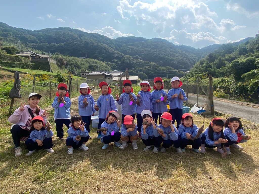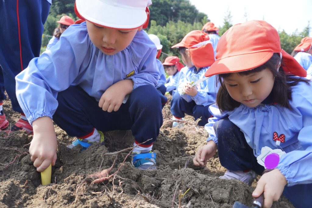 スコップを手に持って、「お芋たくさん掘るぞー!!おー!!!!」と気合いを入れてお芋掘りスタート!